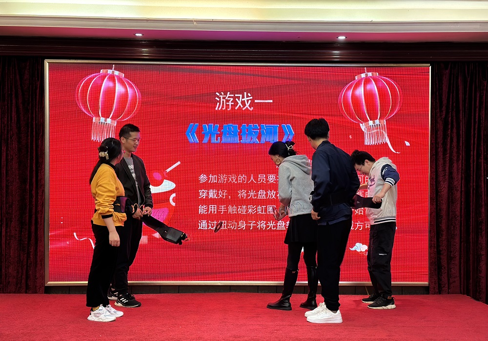 《光盤拔河》哦諾多姿的身體擺動、《戴帽子吃糖》猙獰狼狽的努力表情和《歡樂踩氣球》你來我往的大混戰(zhàn),更是給年會增添了許多樂趣。